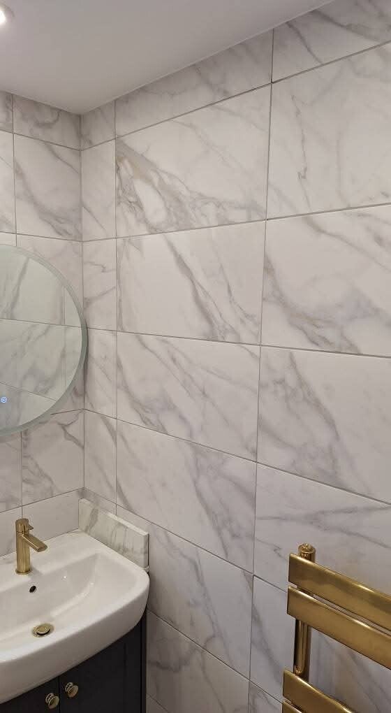 We carefully reconfigured the room to maximise functionality, including a cleverly concealed boiler cupboard so well hidden, you wouldn’t know it’s there unless we told you. The bathroom was finished in elegant gold fittings and light marble-effect tiles, creating a bright, modern feel despite the compact size.