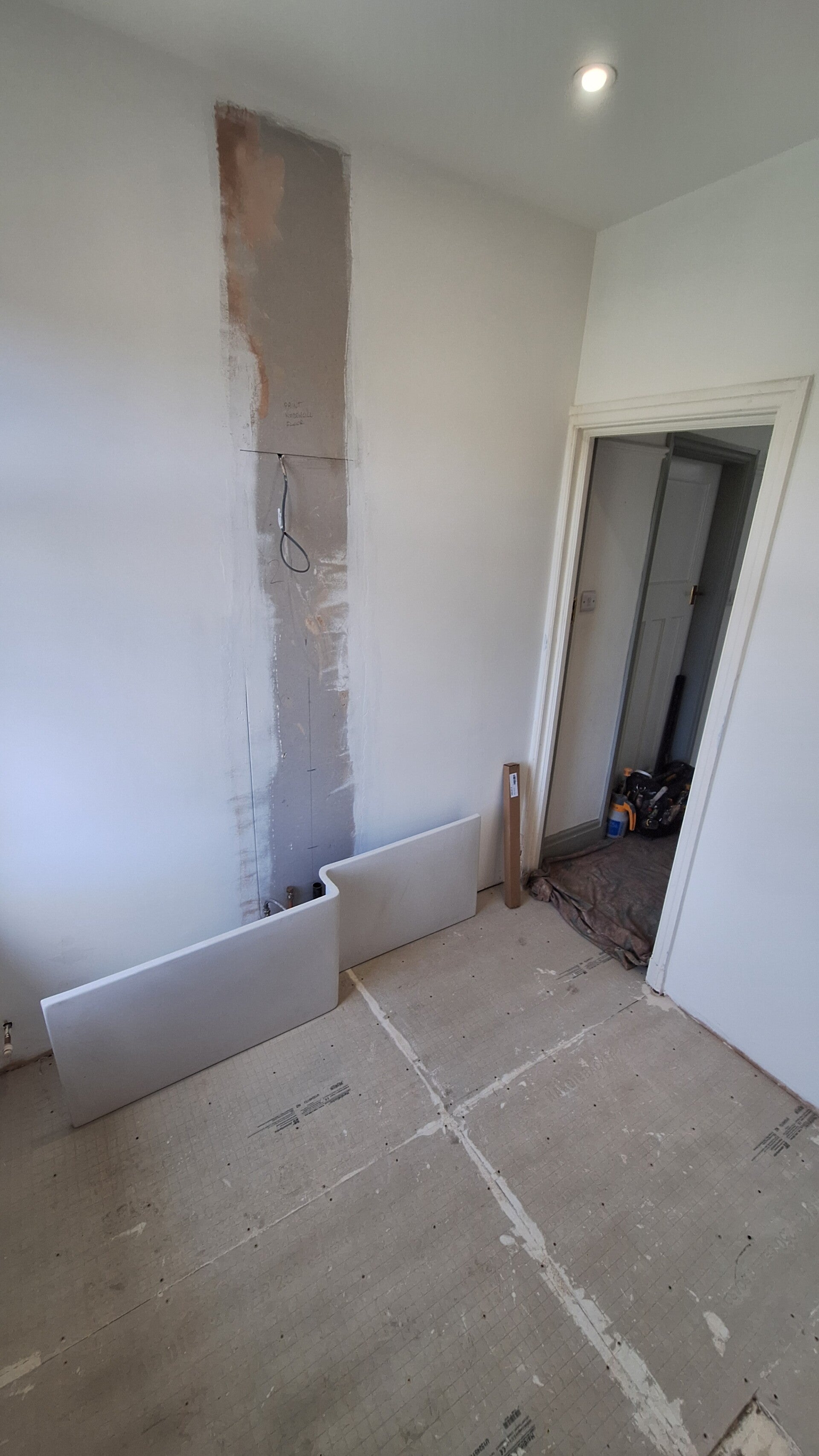 We began by removing the damaged wallboards and preparing the room properly before applying fresh skimming to achieve a smooth, clean finish. A new towel heater was installed to add both comfort and a modern touch. The bath-and-shower combination was fitted with care, giving the room a practical layout without compromising on style.