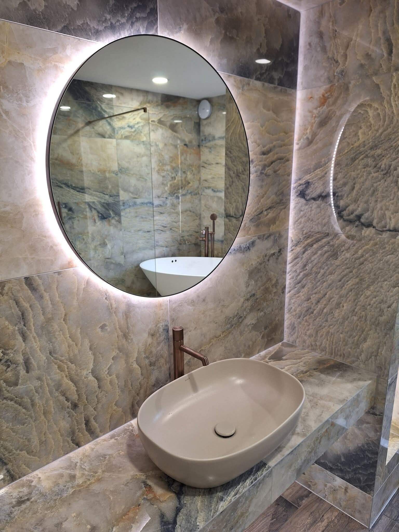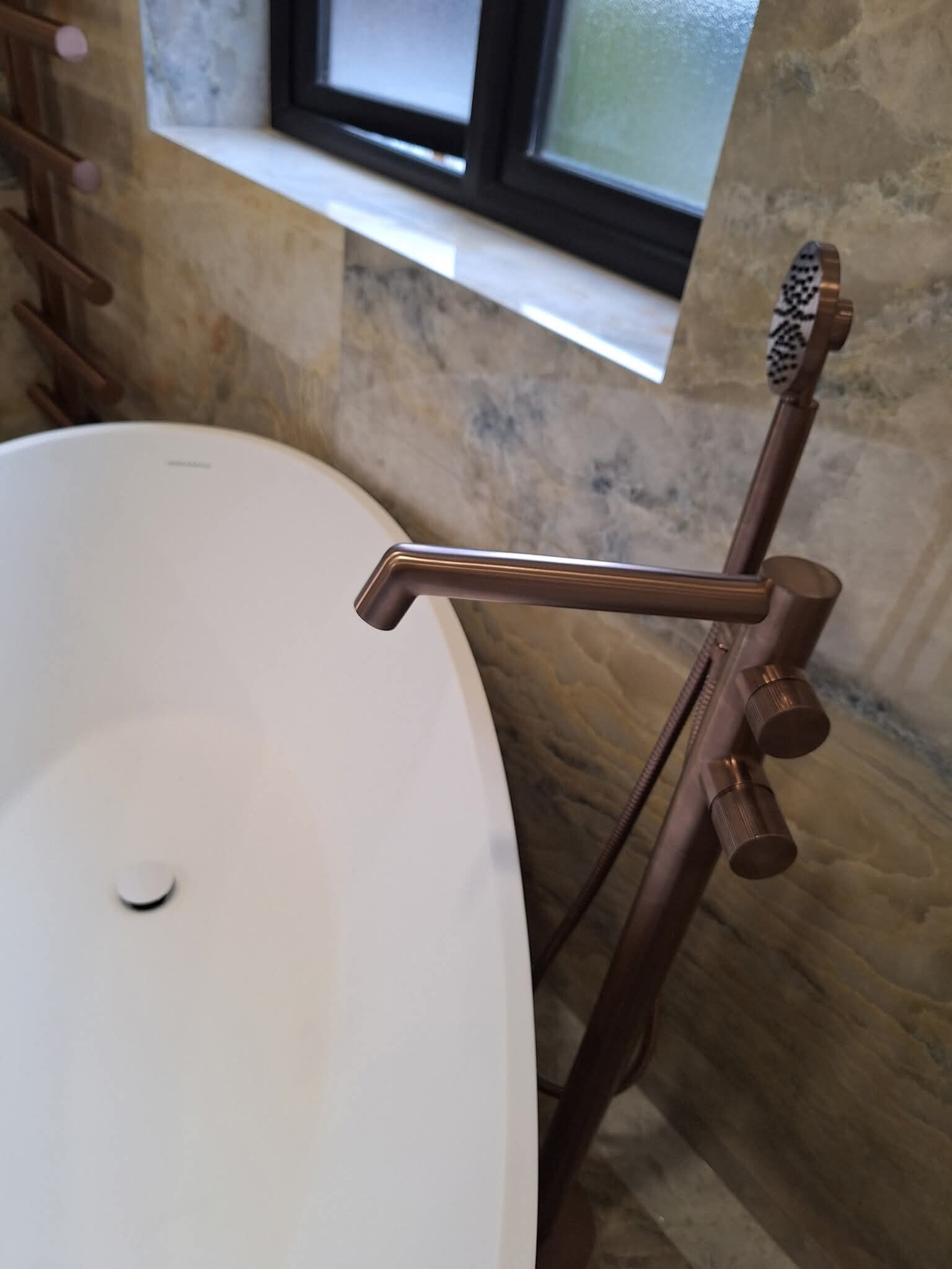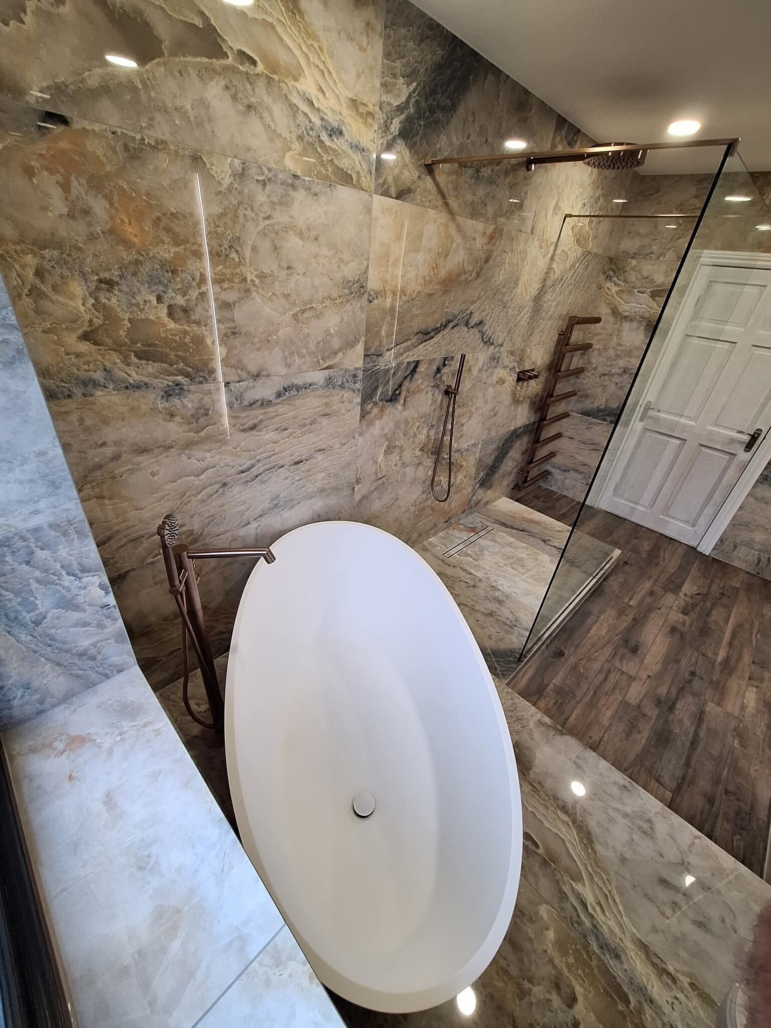 We created a dedicated space for a freestanding bath and a wet room-style shower, along with a fully tiled area for a countertop basin that really completes the look. The quality of the materials was exceptional, and the final result is one of the best bathrooms we’ve ever delivered.