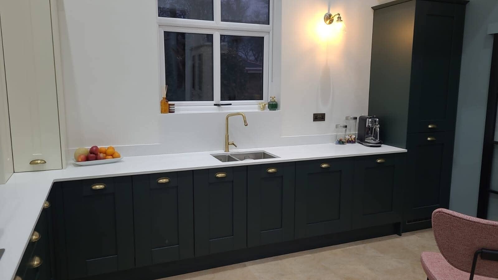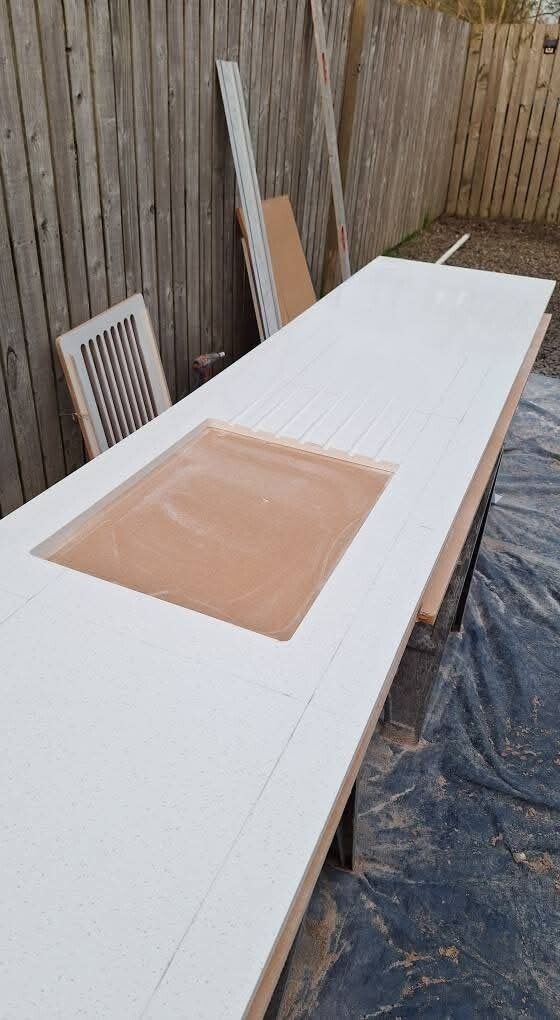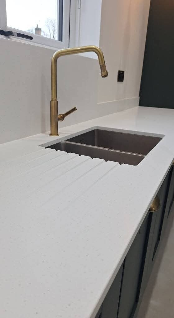 A key feature of this project was the Minerva composite worktop, chosen for its seamless joints, durability and premium appearance. It paired beautifully with the modern kitchen design and added a high‑quality finish to the space. As part of the renovation, we also installed new radiators to improve heating efficiency and overall comfort in the room.