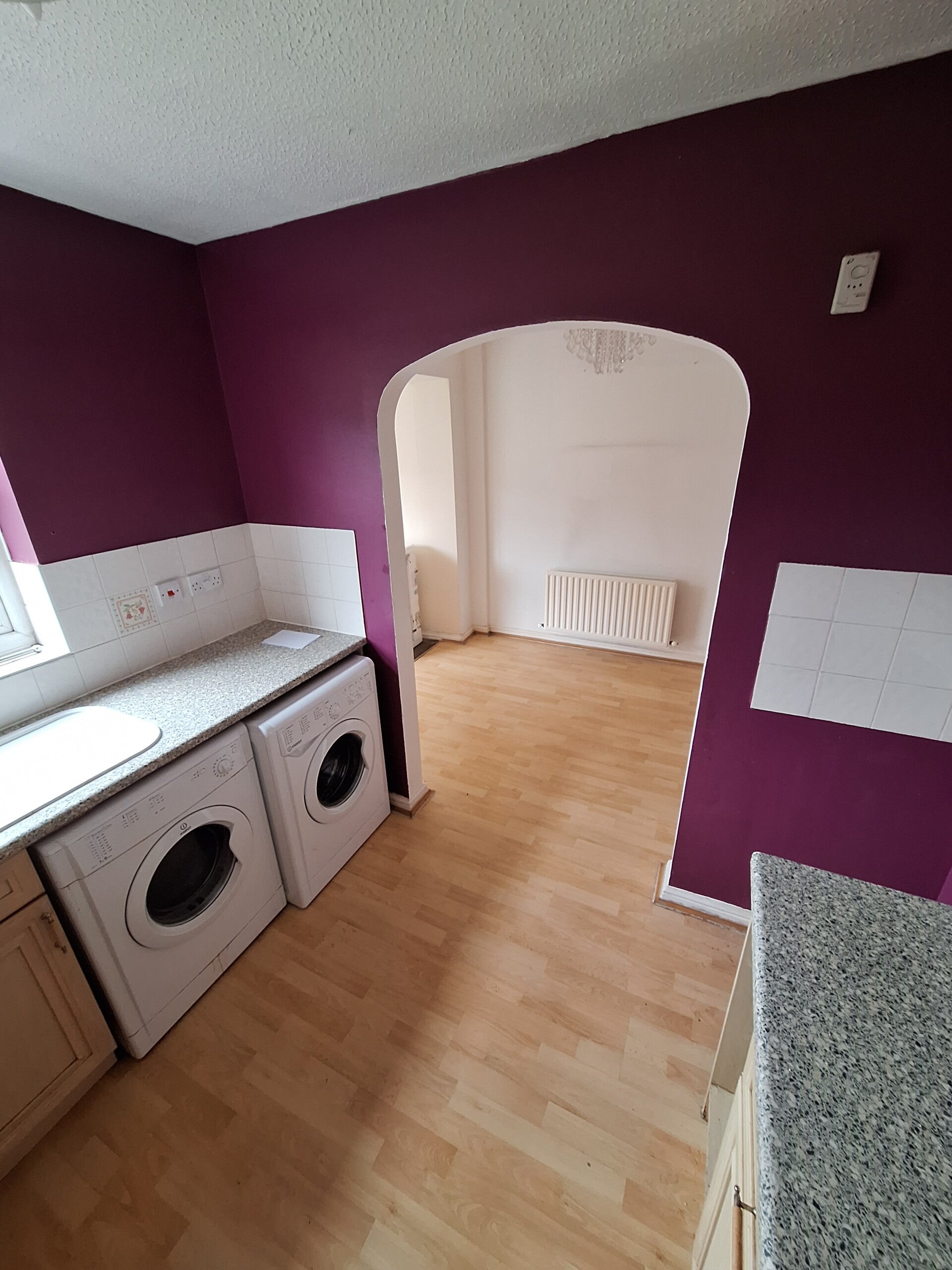 We began by removing the old kitchen and taking down the partition wall between the kitchen and dining area to open up the space. The worn laminate flooring was taken out, and we carried out small electrical alterations before installing new LED ceiling lights to brighten the room. Fresh skimming and painting gave the walls a smooth, modern finish.