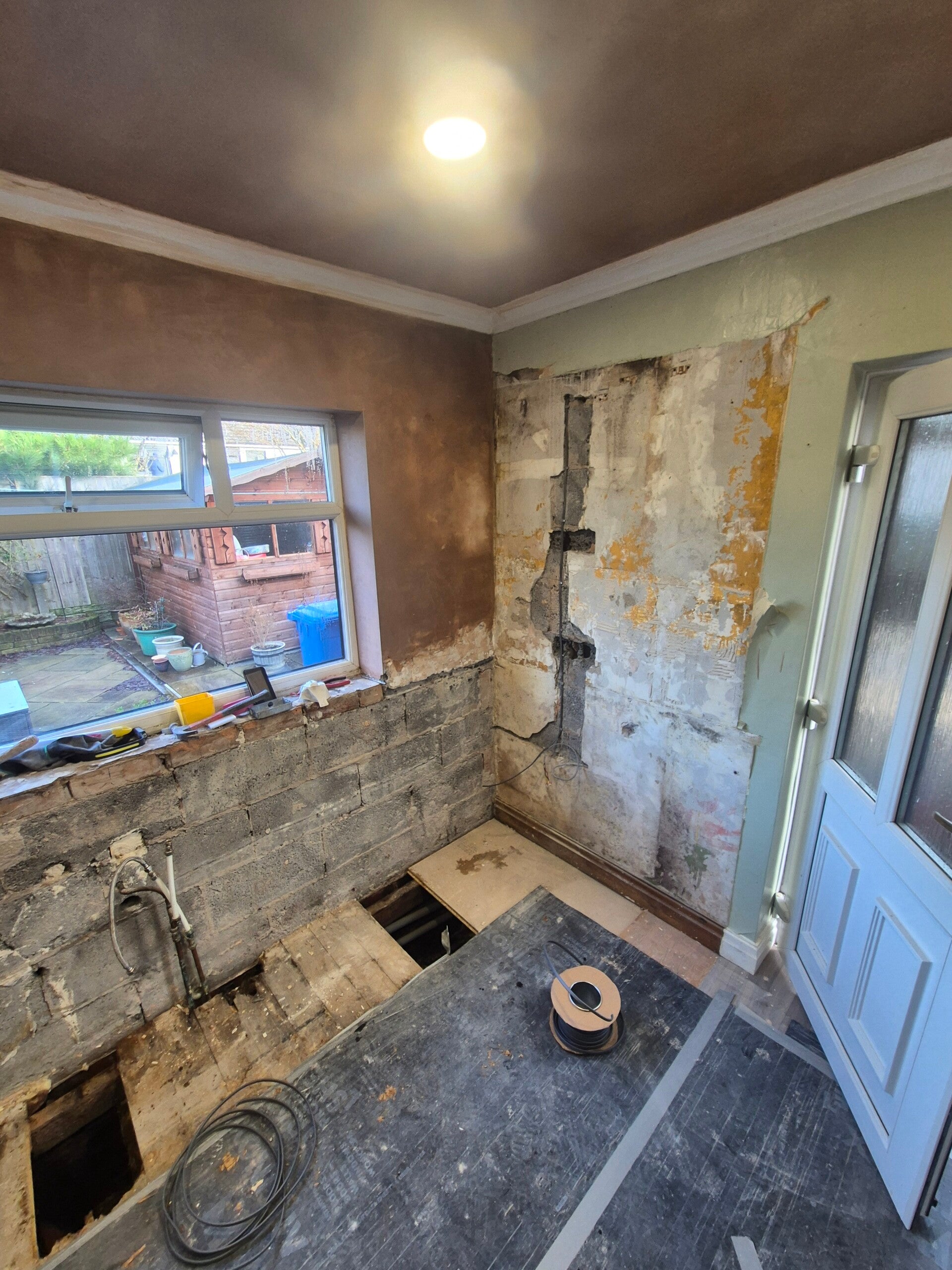 The electrics also needed upgrading to safely handle the new appliances and a powerful induction hob. After all the prep work was completed, the room was skimmed, painted and ready for the kitchen installation.